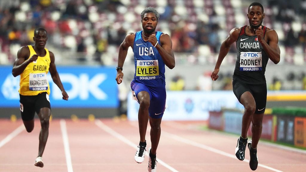 Yhdysvaltalainen Noah Lyles antoi esimakua tulevasta yleisurheilun MM-kisojen miesten 200 metrin alkuerissä Dohassa sunnuntaina.