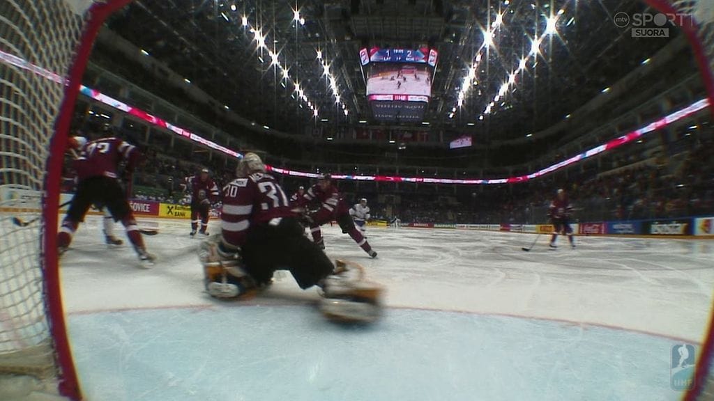 Heti perään vaihdossa Norja voitti hyökkäyspään aloituksen ja olkapäällä torjunnan tehnyt Merzlikins yritti lyödä kiekon mailallaan kulmaukseen. Kiekko kuitenkin osui suoraan latvialaispakin kantapäähän ja pomppasi siitä maaliin.