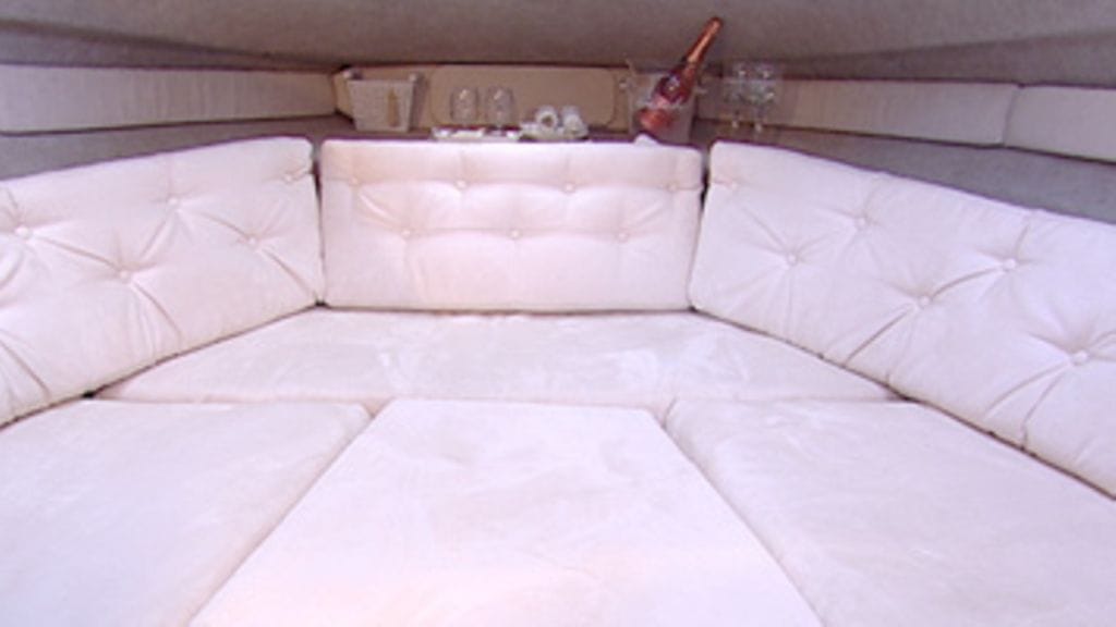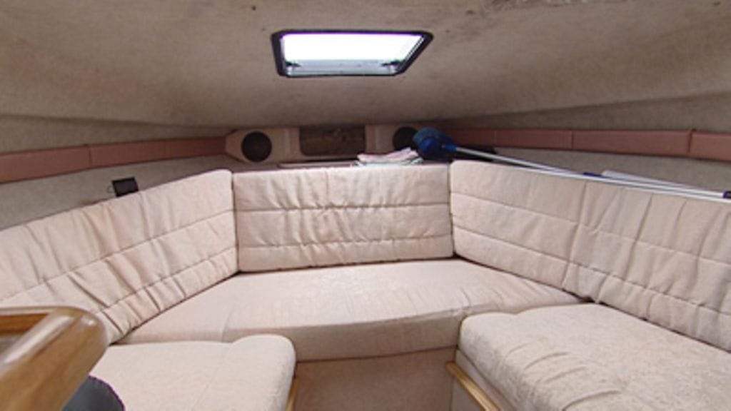 Suurimman muutoksen veneessä on kokenut sisäpuoli. Oikeilla tekstiilivalinnoilla saatiin erittäin paljon aikaiseksi. Sohvat ovatkin nyt päässeet täysin uuteen loistoonsa, kun vanhojen aikansa eläneiden kankaiden tilalle vaihdettiin raikkaat ja helppohoitoiset kankaat. Veneen omistajat toivoivat hiukan ahtaisiin tiloihin lisää tilan tuntua ja vaaleat tekstiilit saavat sitä toden teolla aikaiseksi.