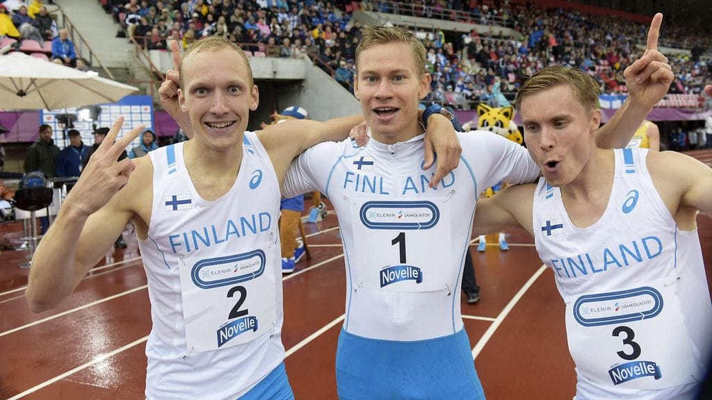 Aitajuoksijat aloittivat Ruotsi-ottelun toisen päivän täysosumalla. Oskari Mörö, Joni Vainio-Kaila ja Petter Monni tuulettelivat maalissa riehakasta kolmoisvoittoa, jonka ansiosta Suomen miehet kasvattivat ensimmäisen päivän niukkaa pistejohtoa.
