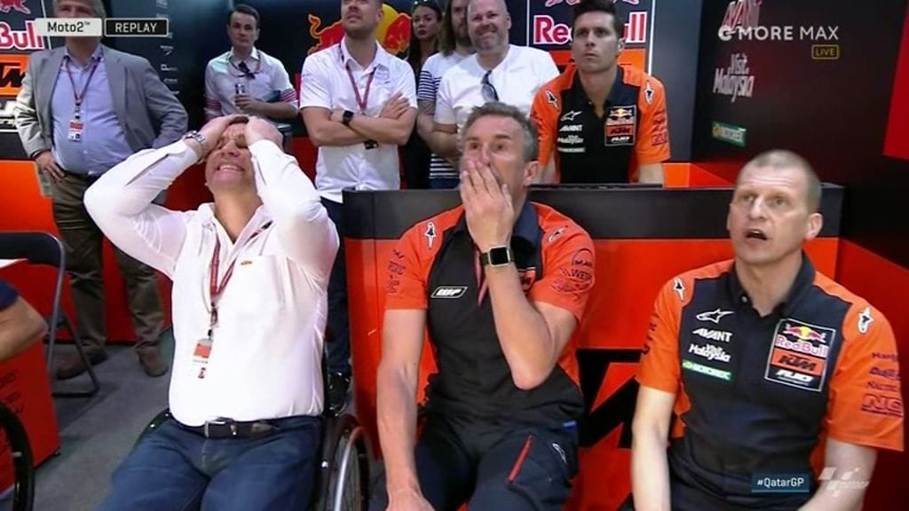 Aki Ajon Moto2-tallin portugalilaiskuljettajan Miguel Oliveiran startti sunnuntain Qatarin kisaan oli tapahtumia täynnä.