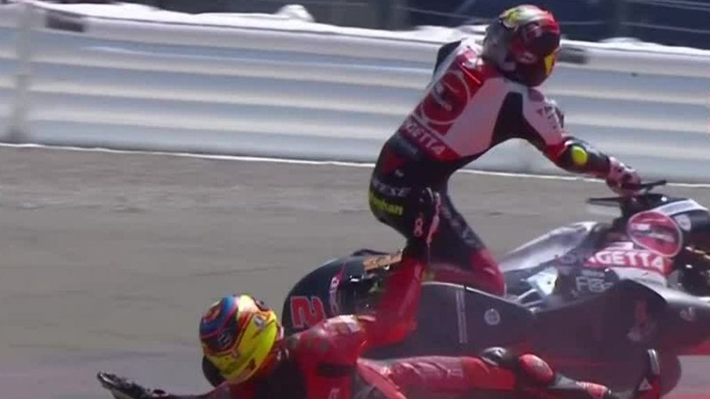 Tuomaristo langetti Moto3-kuljettaja Gabriel Rodrigolle kovan rangaistuksen argentiinalaisen kolattua kolmansissa harjoituksissa Ryusei Yamanakan kumoon. Rodrigo joutuu lähtemään sunnuntain kilpailuun varikolta.