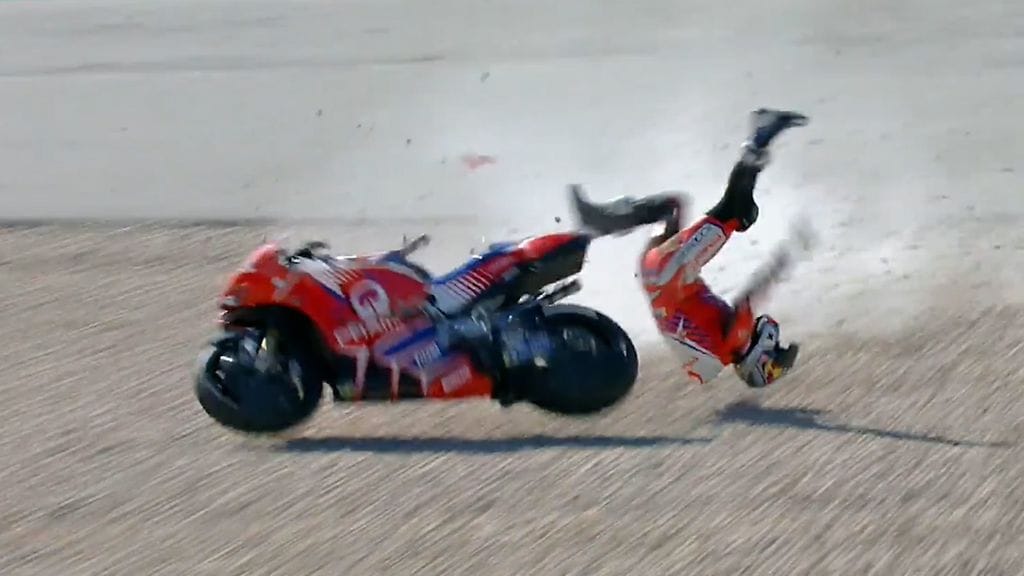 Jorge Martin kaatui Portimaon radan seitsemännessä mutkassa ja ajautui hiekalle hurjaa vauhtia. Martin säilyi volttien jälkeen tajuissaan, mutta espanjalaiskuljettaja kiidätettiin radalta heti sairaalaan.