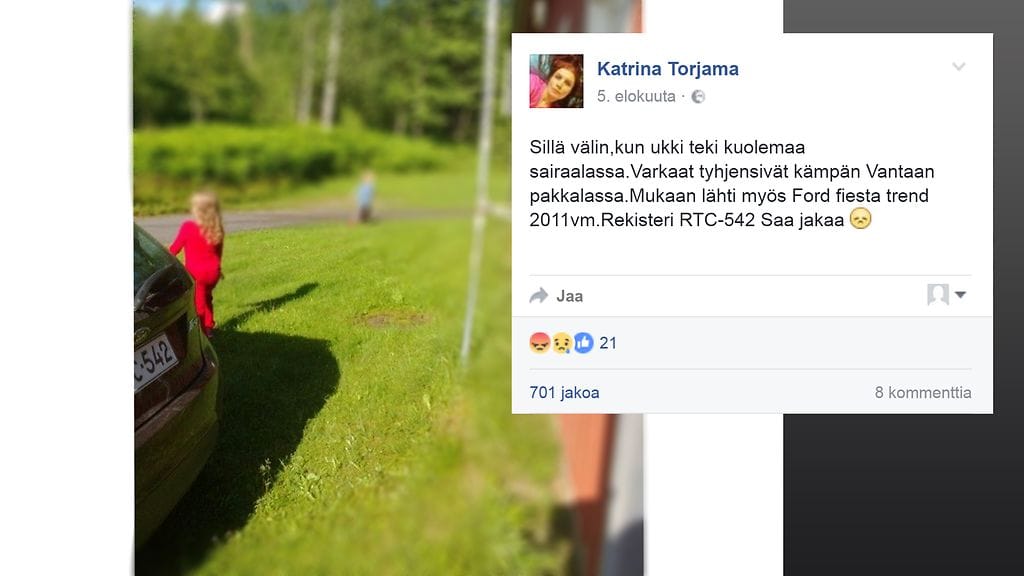 Torjama laittoi ilmoituksen isoisän varastetusta autosta Facebookiin 5. elokuuta ja myös MTV uutisoi perhettä kohdannesta tragediasta.
