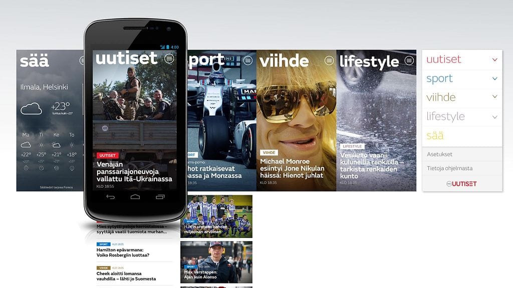 Sovellus tuo tarjolle nopeasti ja käyttäjäystävällisesti päivän tärkeimmät ja viihdyttävimmät uutiset. Ensi vuoden alusta sovellus laajenee iOS- ja WindowsPhone –puhelimiin.
