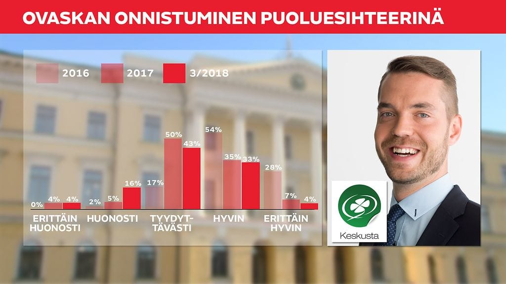Puoluesihteeri Jouni Ovaskan saamat arviot ovat entisestään heikentyneet.