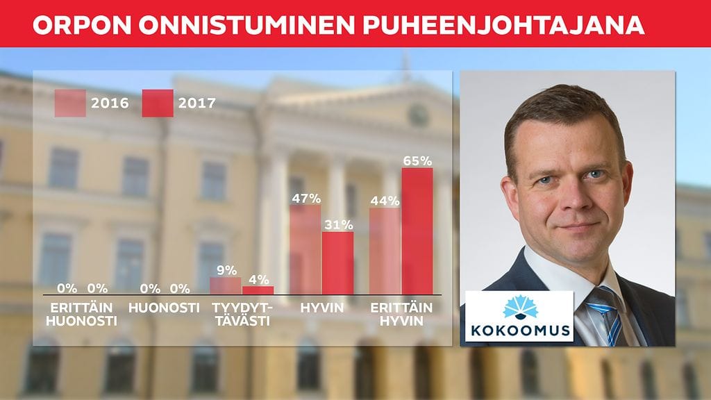 Kokoomuksen ministerit saavat erinomaiset arvosanat omalta kenttäväeltään MTV Uutisten vuotuisessa kyselyssä. Erityisesti puolueen puheenjohtaja ja valtiovarainministeri Petteri Orpo näyttää vuodessa saavuttaneen puolueiden piiripäättäjien liki täydellisen tuen.