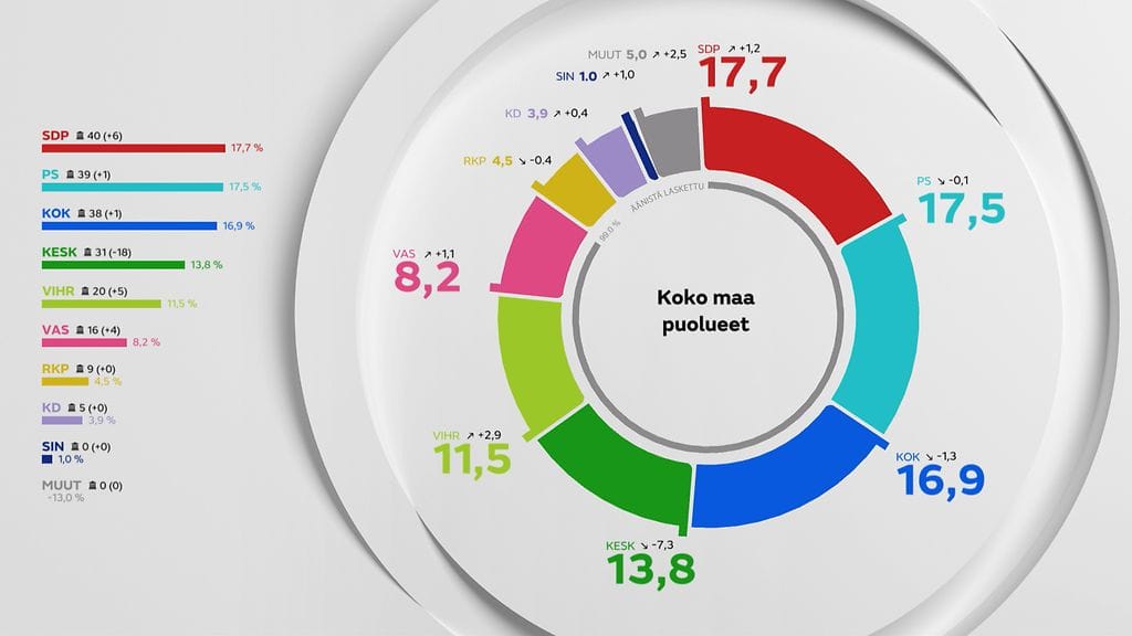 Eilisillan eduskuntavaalit olivat tiukkaakin tiukemmat. SDP voitti perussuomalaiset äärimmäisen pienellä erolla.