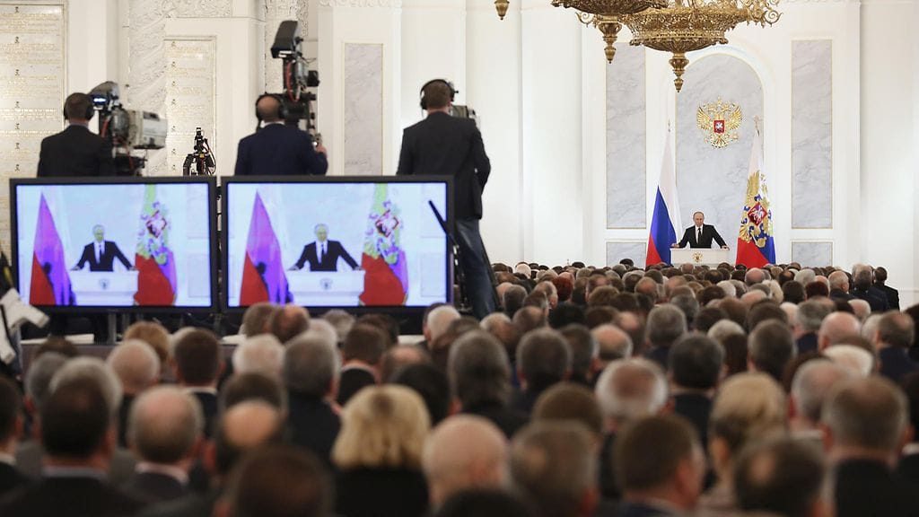 Vladimir Putinin vuotuisen puheen alun perusteella turvallisuusteemat näyttävät muodostuvan puheen pääteemaksi. Putin aloitti kiinnittämällä koko kuulijasalin huomion puhetta kuuntelemaan kutsuttuihin sotilaiden läheisiin, jotka ovat menettäneet läheisensä Syyrian sodassa. Lyhyen hiljaisen hetken jälkeen itse puhe alkoi toden teolla.