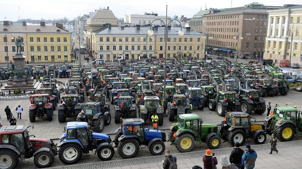 Traktorimarssi lähestyy Helsingin keskustaa ja Senaatintoria, jossa mielenosoitus pidetään. Poliisin mukaan marssi hankaloittaa liikennettä, mutta pahoja ruuhkia ei vielä ole. Raitiovaunut ohjataan Senaatintorilla poikkeusreittejä, ne eivät liikennöi Snellmaninkatua.