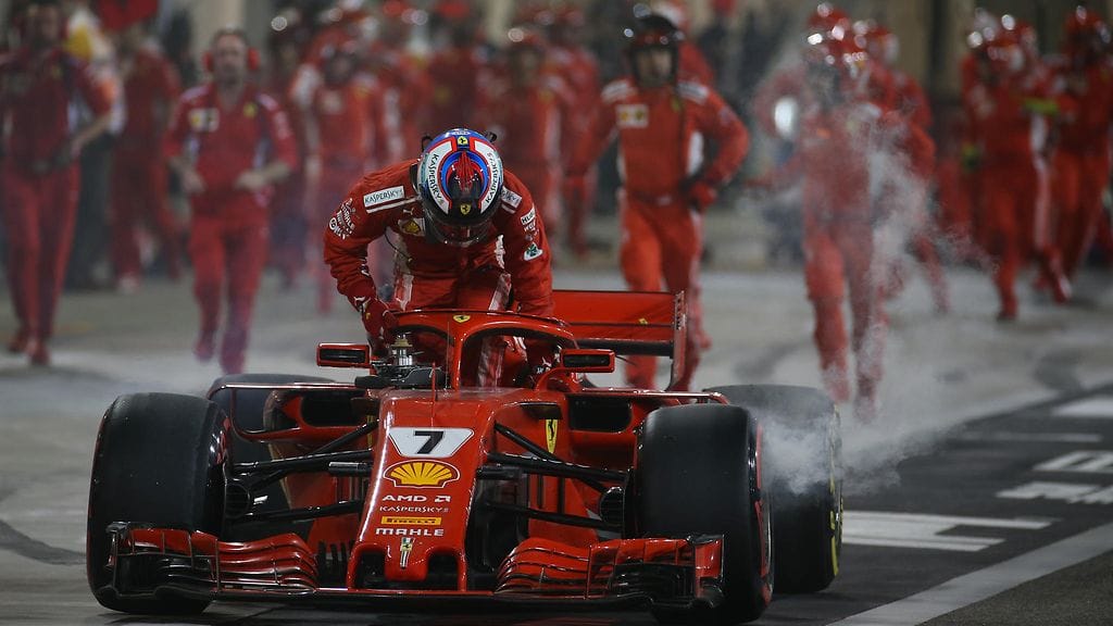 1. sija: Räikkösen varikkostoppi meni pahasti pieleen Bahrainin GP:ssä, minkä seurauksena mekaanikko sai vakavan jalkavamman: