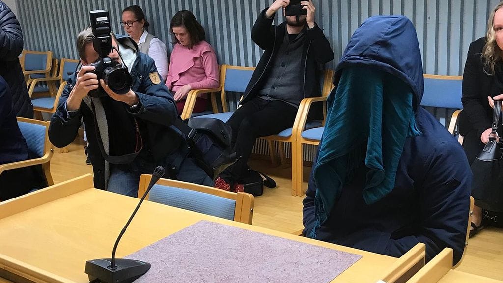 Kun media sai minuutin kuvausluvan aivan oikeudenkäynnin alussa, nuorukainen peitti kasvonsa huivilla ja veti hupun päähänsä.
