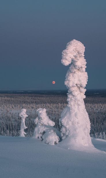 – Ehkä helpoin paikka mennä katsomaan niitä on Riisitunturilla Posiolla. Siellä tykkylumipuissa on hyviä muotoja ja niitä on jotenkin sopivassa määrin. Lisäksi siellä on tunturimaisemaa taustalla, kertoo Mäkinen.