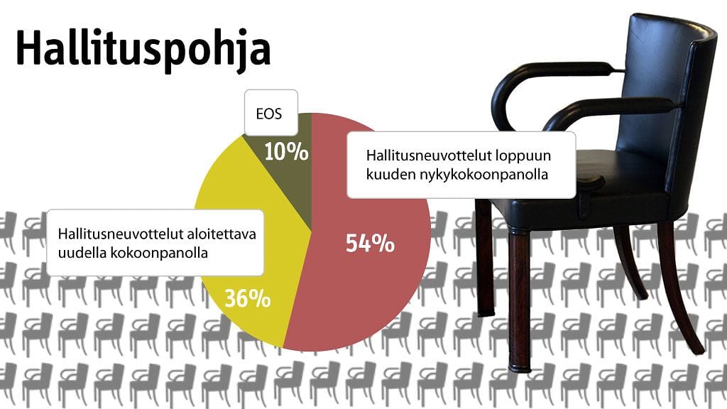 Yli puolet suomalaisista haluaa, että käynnissä olevat hallitusneuvottelut käydään loppuun mukana olevilla puolueilla. 54 prosenttia on sitä mieltä, että hallitus muodostetaan kuuden mukana olevan puolueen kesken.