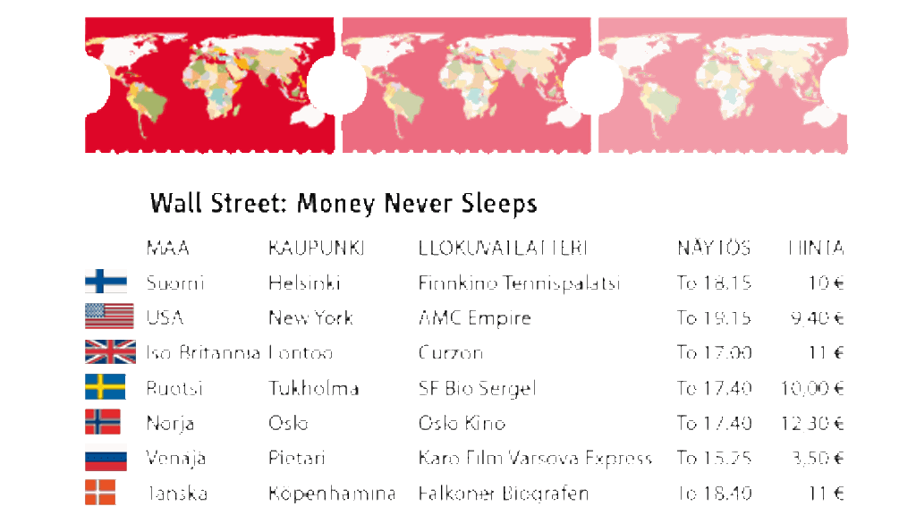 Taulukossa on Wall Street -elokuvan lippujen hinnat.