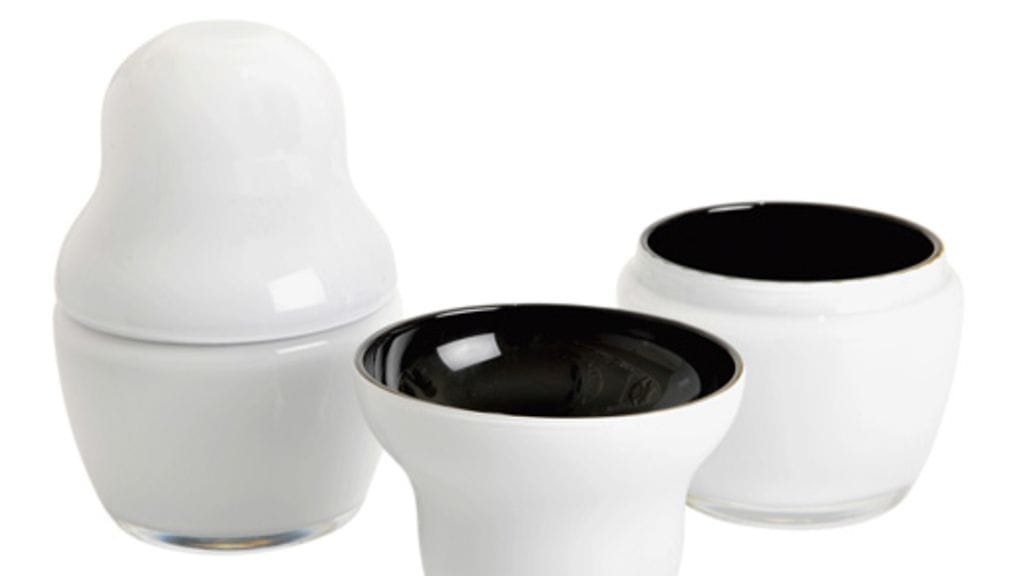 Michelin-ukkoa muistuttavissa lempeissä linjoissa on talvista tunnelmaa. Muurlan Muumipappa-lasipurkki 44 euroa.