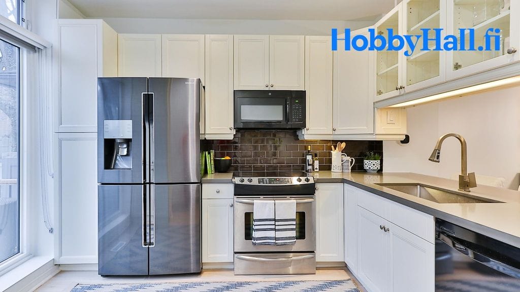 Mittaa tila, johon jääkaappi ja pakastin tulevat. Tarkista myös oven leveys, jotta laitteet mahtuvat ovesta sisään. Integroitu jääkaappi sulautuu keittiön kaapiston joukkoon, mikä luo yhtenäisen ilmeen. Toisaalta integroidun jääkaapin huolto ja vaihtaminen uuteen on vaikeampaa.