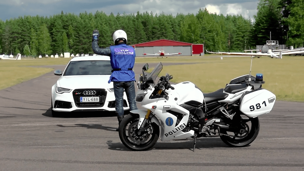 Vanhan kilpakuskin tyyliin Markku Alén ei luonnollisestikaan voinut vastustaa kiusausta pienelle mittelölle. Tämän seurauksena vauhtikaksikko päätyi haastamaan moottoripyöräpoliisiin pieneen kiihdytyskilpailuun Räyskälän lentokentällä. Kuinkas siinä sitten kävikään, kun Audi RS 6 asettui 1 000-kuutioisen poliisimoottoripyörän rinnalle. Se selviää alta löytyvältä videolta.