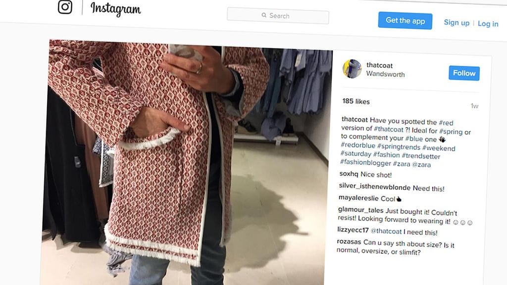 Lontoolainen Alice Frances huomasi vuonna 2016, että erästä Zaran sinivalkoista takkia näkyi katukuvassa yhä useammin. Hän perusti takille Instagram-tilin, jolla on jo tuhansia seuraajia. Tilin nimi on That coat, suomeksi siis Se takki.
