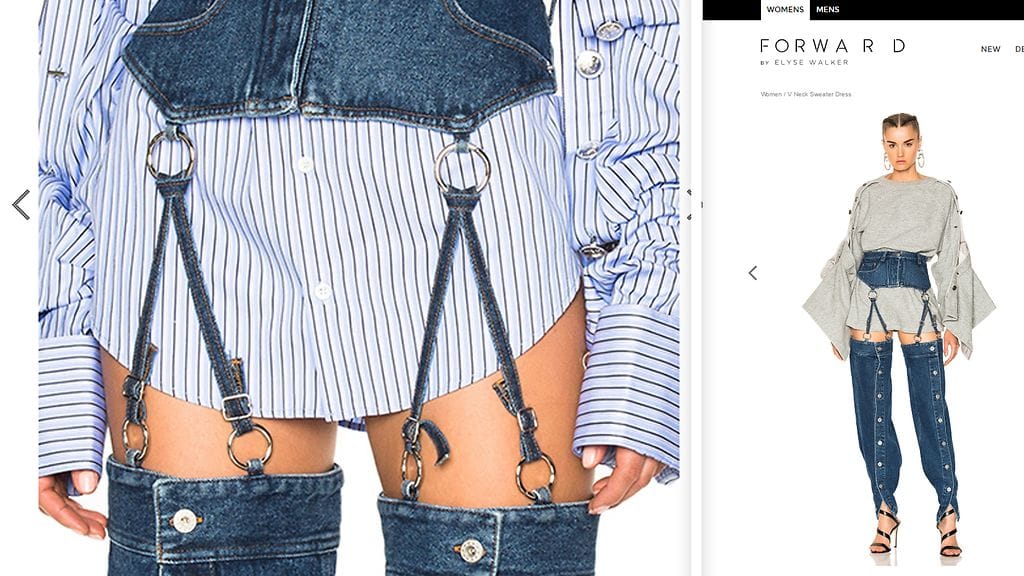 Juuri, kun ehdit toipua rintakarvaisesta uima-asusta, tarjolla on lisää omituisia muotiluomuksia. Pariisilaisen Y/Project-merkin housut ovat oikeastaan vain denim-kankaiset sukkanauhaliivit, joissa puntit roikkuvat, kertoo nbc4i.com.