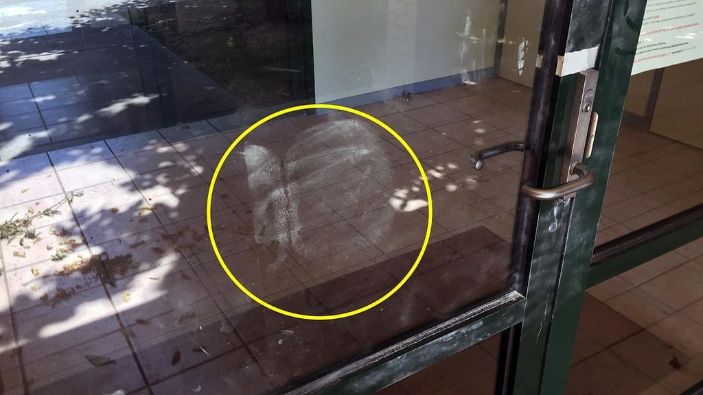 Tarina ei kerro, kuka murtautujista jätti erikoisen jäljen rikospaikalle. Kuvaa lasiin piirtyneestä erikoisuudesta voit ihastella yläpuolella.