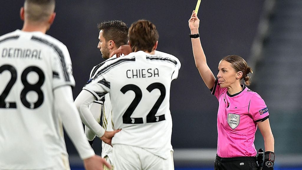 Frappart jakoi Juventuksen ja Kiovan Dynamon välisen ottelun avausjaksolla kaksi varoitusta: yhden Juventuksen Rodrigo Bentancurille (video jutun yläreunassa) ja yhden Kiovan Illya Zabarnyille.