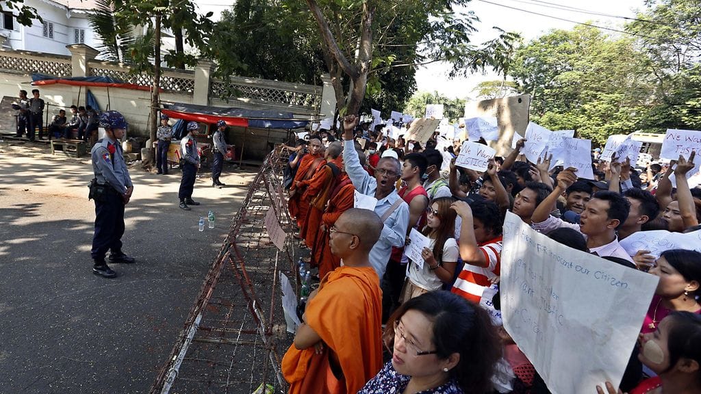 Myanmarissa on myös protestoitu tuomiota vastaan Thaimaan suurlähetystön edessä.