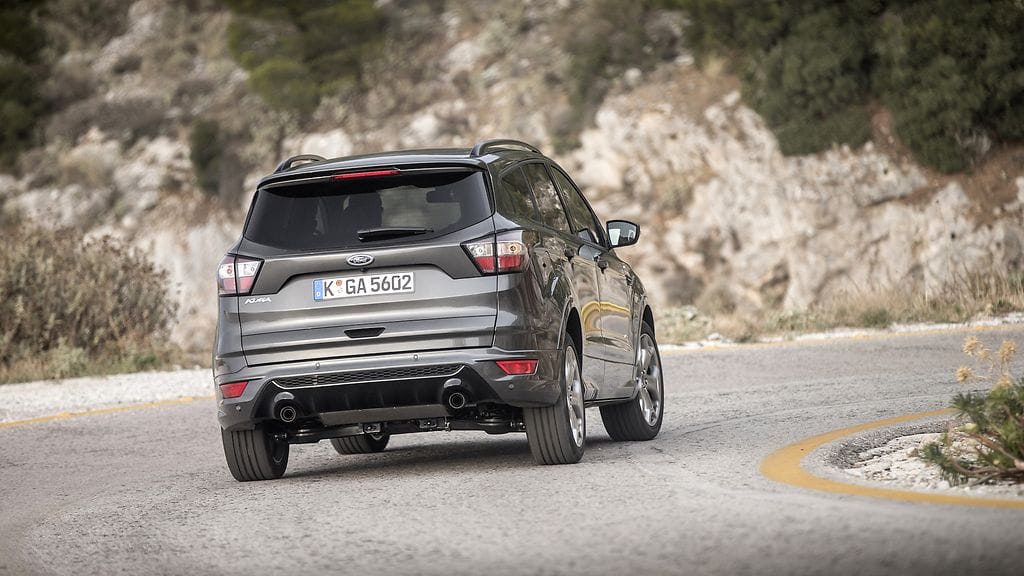 Ohjaamossa ST Line erottuu puolestaan perusversioista erilaisten ja osittain nahalla verhoiltujen istuimien avulla. Kuga on tietysti katumaasturi, joten urheiluauton ominaisuuksia siltä ei kannata odottaa. Kaarteisiin voi kuitenkin kantata nyt hieman reippaammin, sillä ST Linen alustaa ja jousitusta on säädetty aavistuksen verran sporttisempaan suuntaan – ja myös ohjaukseen on haettu piirun verran terävämpää tuntoa.
