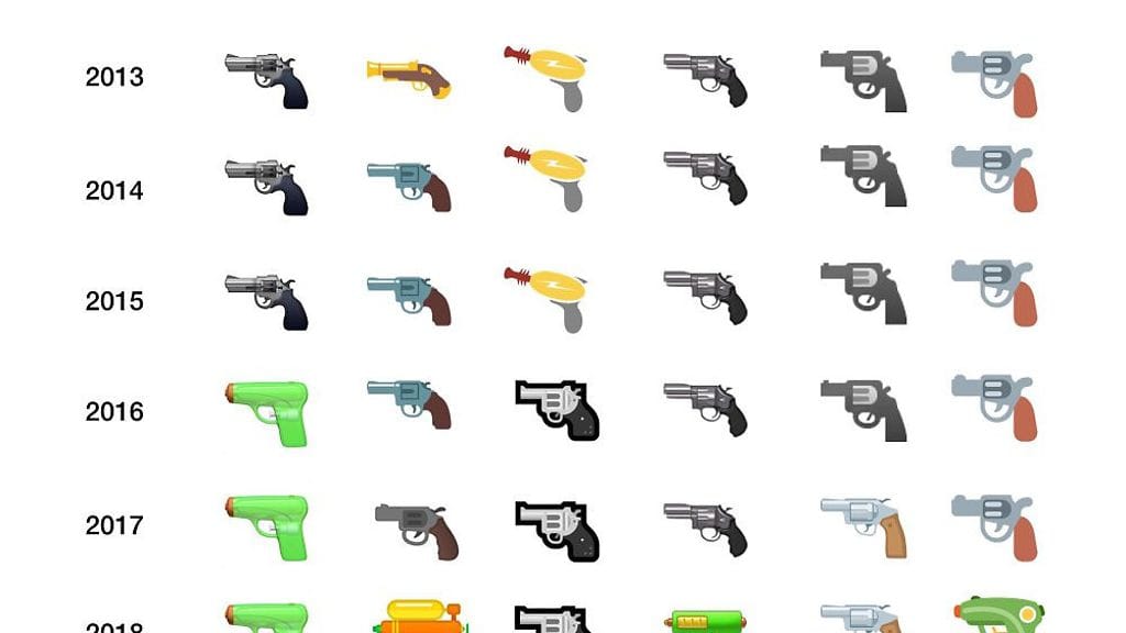 Apple aloitti ensimmäisenä toden teolla emoji-näppäimistöjen aseistariisunnan vuonna 2016 korvatessaan käsiaseensa vesipistoolilla. Sittemmin useimmat muutkin ovat seuranneet samaa tietä, ja nyt myös Facebook ja Microsoft ilmoittivat suunnitelmistaan päivittää emojikirjastoaan.