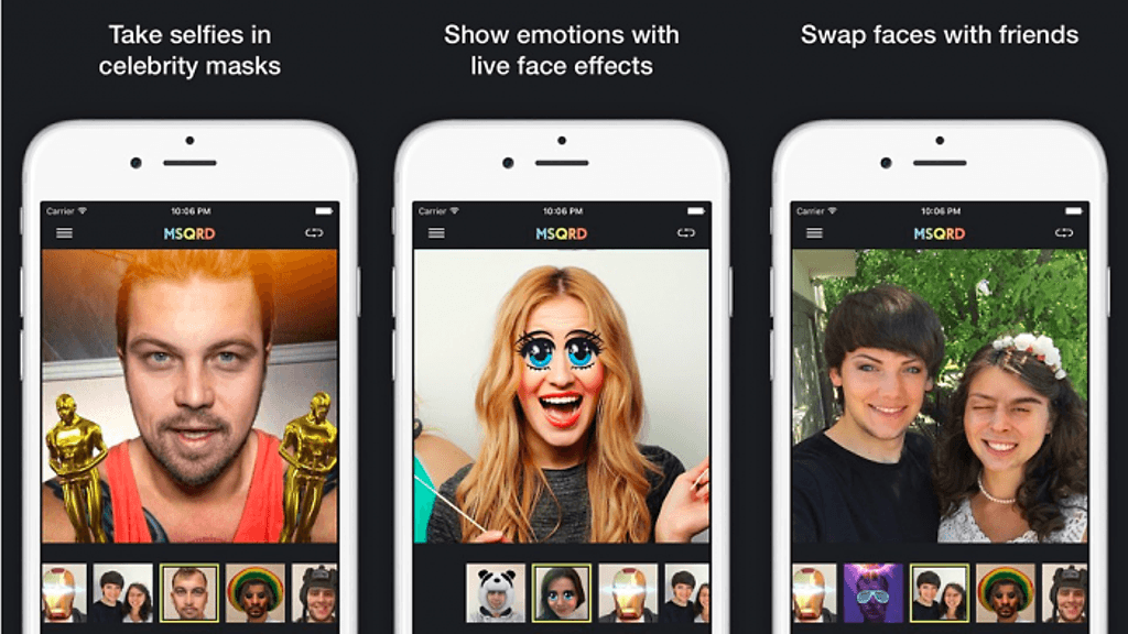 MSQRD-sovellus käyttää filttereitä, joilla saa kasvot vaihdettua ja lopputuloksen tallennettua kuvan tai videon muotoon sosiaalisessa mediassa jaettavaksi. Facebookin ostettua sovelluksen kehittäjän voidaan vastaavia filttereitä odotella myös Facebookiin saapuviksi.
