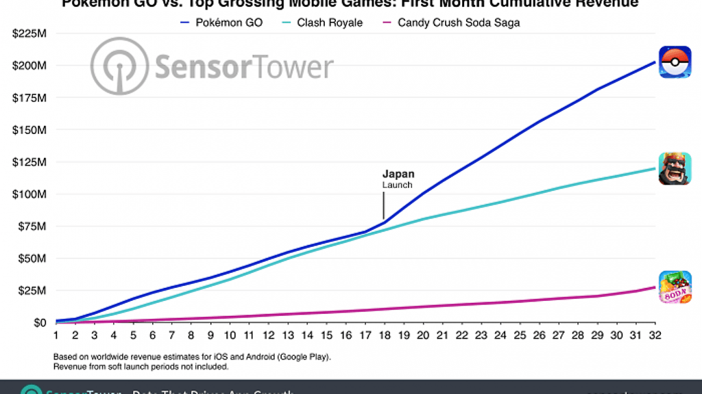 Sovellusanalyysiyhtiö Sensor Tower on kertonut Pokémon GOn tuottaneen 200 miljoonaa dollaria ensimmäisen kuukautensa aikana. Pokémon GO julkaistiin ensimmäisillä markkinoilla Yhdysvalloissa, UK:ssa ja Australiassa 6. heinäkuuta. Rahantuloa myöhemmin kiihdytti erityisesti julkaisu Japanissa. Nyt Pokémon GO on julkaistu jo useissa kymmenissä maissa niin Euroopassa, Latinalaisessa Amerikassa kuin Aasiassakin.
