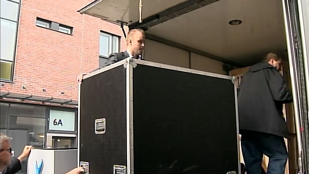 Sitä ennen kone pakattiin huolella Yleisradion päässä. Yleisölle uudenlainen lottokone ja uusi studio paljastetaan tiedotustilaisuuden jälkeen.