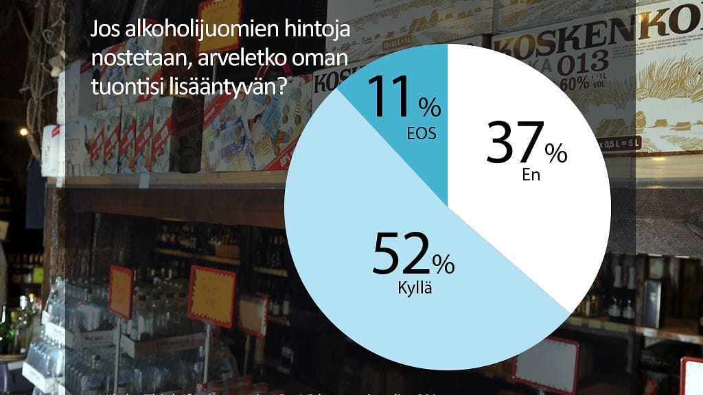 Suomen Alkoholijuomakauppayhdistyksestä arvioidaan, että todellisuudessa viinan tuojien määrä on vielä suurempi. , että kyselyjen perusteella tehty arvio alkoholin tuonnista osuu yleensä alakanttiin. Tullin mukaan alkoholin tuontimäärät ovat kesän aikana nousseet.