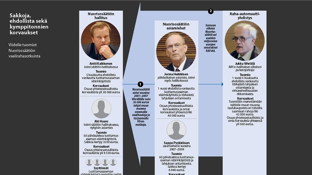 Yhteisvastuullisesti neljä Nuorisosäätiössä toiminutta henkilöä joutuu maksamaan Nuorisosäätiölle 77 781 euroa, josta siis Kaikkosen osuudeksi muodostunee lähes 31 000 euroa.