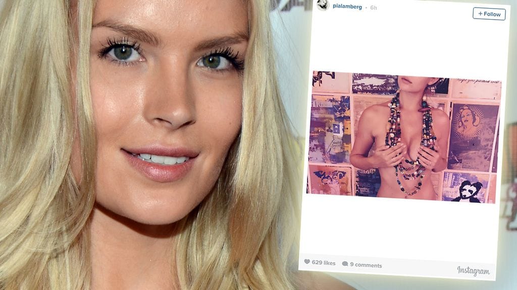 Mallikaunotar Pia Lamberg julkaisi eilen sunnuntaina Instagramissa kuvan, jossa hänellä on kaulassaan vain helmiä.