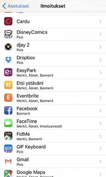 Älypuhelimesta voi tänä päivänä löytyä helposti kymmeniä erilaisia sovelluksia, joista monet mielellään lähettävät kaikenlaisia ilmoituksia. Ilmoitukset esimerkiksi saapuvista viesteistä voivat olla hyödyllisiä, mutta toisaalta monet pelit saattavat ärsyttää käyttäjää turhilla ilmoituksilla, jotka vain muistuttavat pelin olemassaolosta. Tässä katsaus siihen, miten ilmoitusasetuksia voi muokata iPhonella ja muilla Applen iOS-laitteilla.