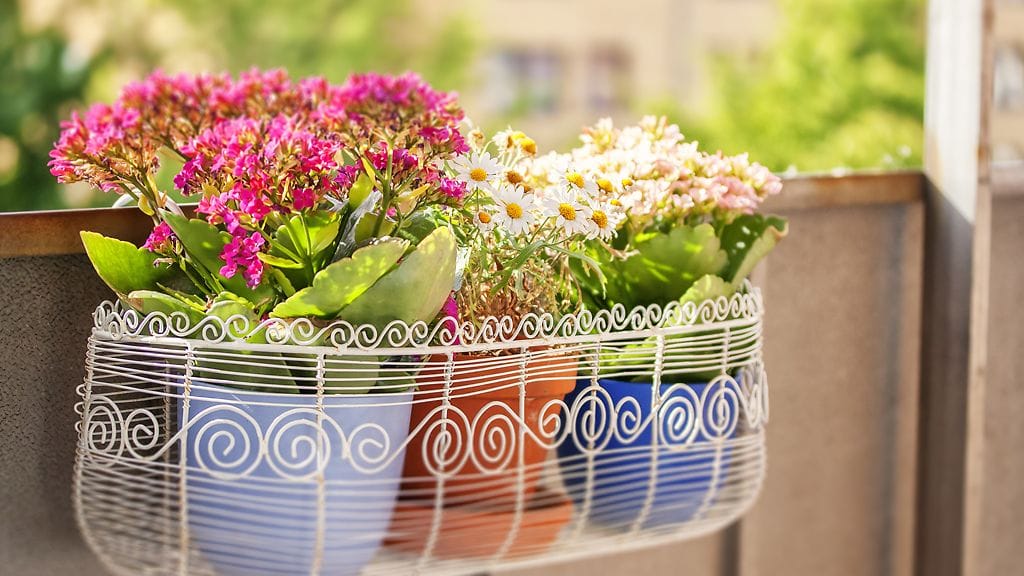 – Kukkaruukut on helppo valita sointumaan kalusteiden materiaaleihin. Isolle parvekkeelle sopivat suuret lattiaruukut, näyttävät köynnösristikot ja amppelit.