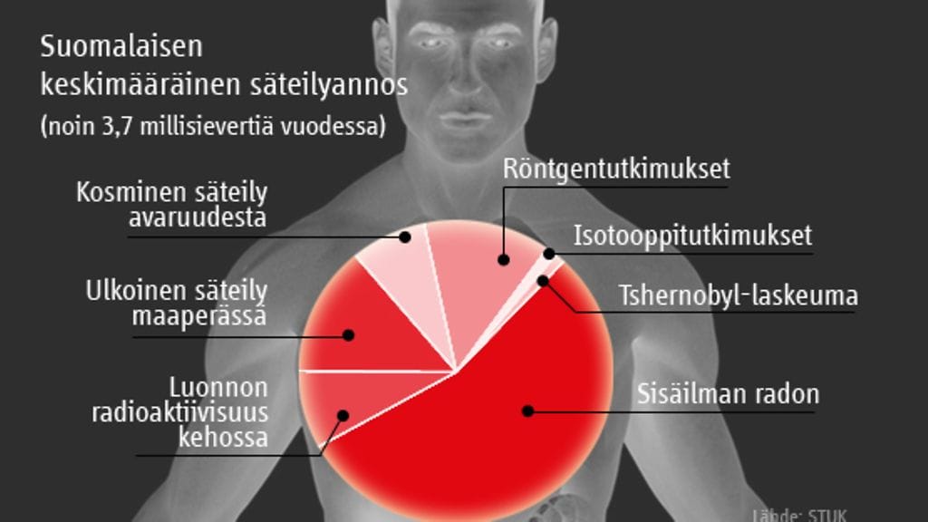 Suomalainen saa radioaktiivista säteilyä keskimäärin 3,7 millisievertiä vuodessa, kertoo Säteilyturvakeskus STUK.