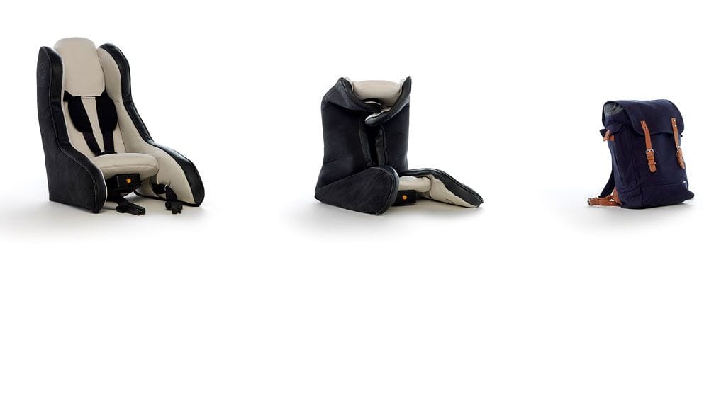 Autovalmistaja Volvon kehittämä turvaistuin täyttyy ilmalla ja mahtuu reppuun. Suunnitteluvaiheessa olevan istuimen turvallisuudesta ei ole vielä tarkkaa tietoa.