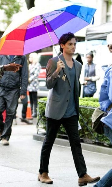 Gossip Girl -sarjasta tuttu Ben Badgley edusti sarjan uusimman tuotantokauden kuvauksissa tutussa värikkäässä sateenvarjossa. Värikäs sateenvarjo viestii muille positiivisesta energiasta ja siitä, ettei sadekelillä tarvitse suojella itseään harmaissa.