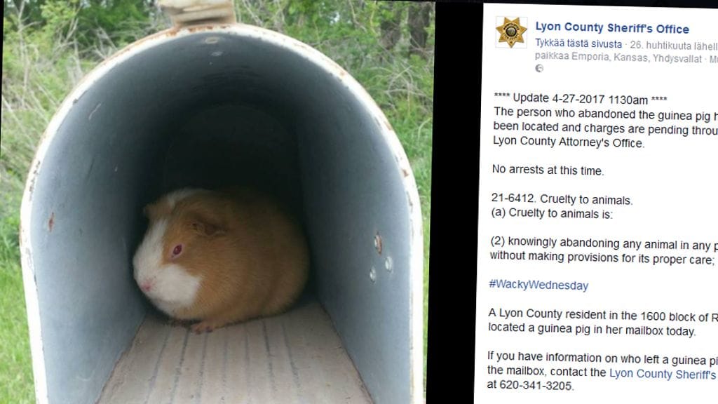 Kun amerikkalaisnainen meni aamulla kurkkaamaan postilaatikkoonsa, hän odotti kenties mainoslehtistä tai päivän uutisia. Postilaatikossa oli kuitenkin yllätys: hylätty marsu.