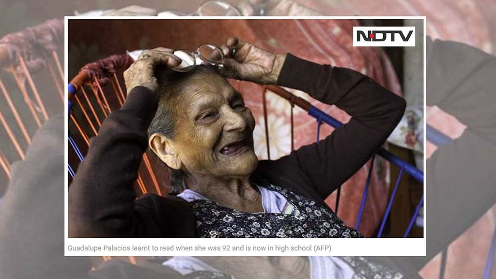 Meksikolainen Guadalupe Palacios on helppo erottaa luokkatovereistaan. Lukioikäisten kanssa koulua käyvä Palacios kun on 96-vuotias, kertoo Ndtv.com.