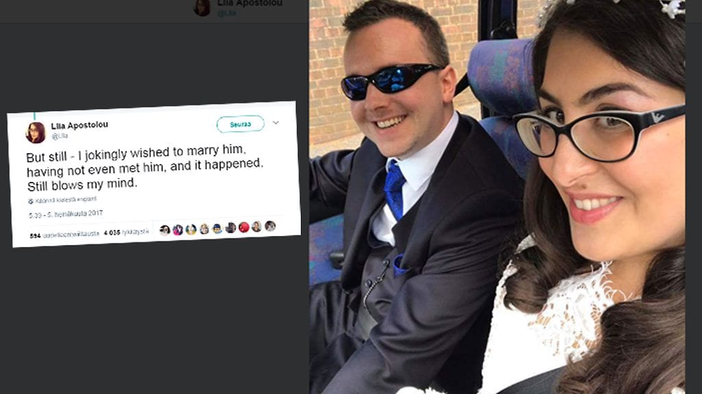 Lontoolaisen Llia Apostoloun rakkaustarina on valloittanut sydämiä ympäri maailmaa. Apostolou löysi elämänkumppaninsa netin kautta, muttei suinkaan deittisivustolta – kaikki alkoi mikroblogipalvelu Twitteristä, kertoo Bored Panda -sivusto.