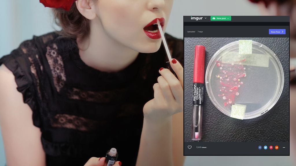Nimimerkkiä Semicolon_Expected jakoi kuvan huulikiilostaan, josta hän oli ottanut näytteen petrimaljaan. Kolmen päivän kuluttua maljassa kasvoi iloinen bakteeriviljelmä.