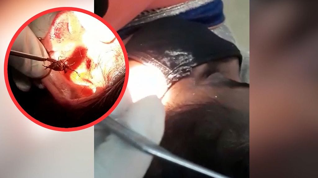 Tilanne taltioitiin videolle, kun lääkäri kaivoi pinseteillä naisen korvasta ulos elävän sirkan.