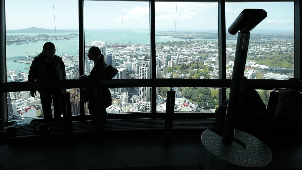 Ryhmä turisteja koki elämänsä suurimpia kauhunhetkiä Uudessa-Seelannissa, kun 186 metrin korkeudessa olevan näköalatornin lattiatasanteen lasi hajosi säröille heidän allaan. Osa lattiatasanteesta on lasia, jonka läpi voi katsella alapuolella levittyvää kaupunkia.