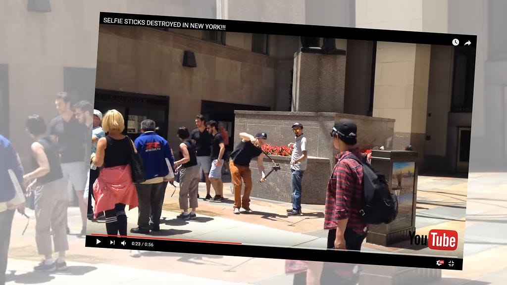 Buddy Bolton kertoo YouTube-sivullaan olevansa kyllästynyt selfieitä ottaviin turisteihin. Videolla Boltonin kaveri katkoo oksasaksilla ihmisten selfietikkuja.