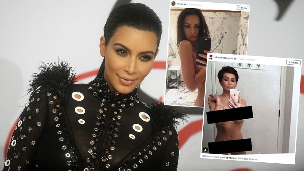 Nyt Kardashiania tuetaan jo rohkeammin menetelmin. Muun muassa Sharon Osbourne, Kylie Jenner ja Emily Ratajkowski ovat nyt julkaisseet omat versionsa kohun nostattaneesta alastonselfiestä.