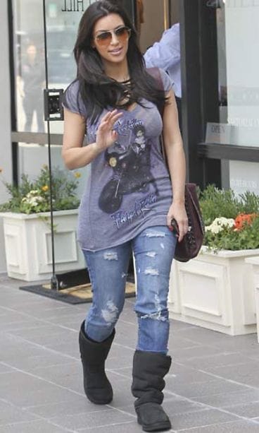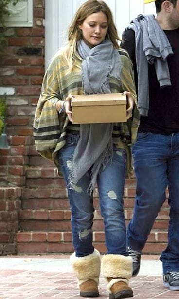 Sekä Kim Kardashian että Hilary Duff yhdistävät paksut saappaat tottuneesti muodikkaasti kulutettujen farkkujen kanssa. Töppöset pitävät jalat lämpiminä kylmemmilläkin säillä.