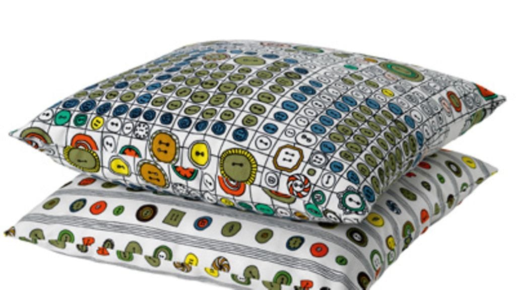 Perinteinen pyöreä muoto inspiroi nyt suunnittelijoita. Erilaiset mutta toisiinsa sopivat Lusy Knapp -tyynyt ovat Ikeasta. Koko 50 x 50 cm, hinta 7,95 euroa/2 kpl.